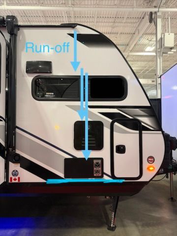 Factory sealing and water runoff decisions occur during RV manufacturing.